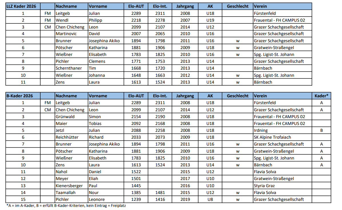 Jugendkader Anmeldungen: Anmeldung Trainings & betreute Turniere Downloadmaterial: Material für Trainer Material für den Jugendkader Jugendkader Steiermark 2026:
